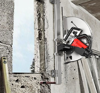 Wall SawOur wall saws are designed for efficient cutting of reinforced concrete, brick walls, and natural stone. Whether you need to create door openings, windows, elevator shafts, or modify existing structures, our machines deliver precision cuts without damaging the surrounding structure.The saws feature a split design for easy transport and one-person operation, combined with high power and low weight – filling the gap between heavy hydraulic systems and underpowered electric saws.